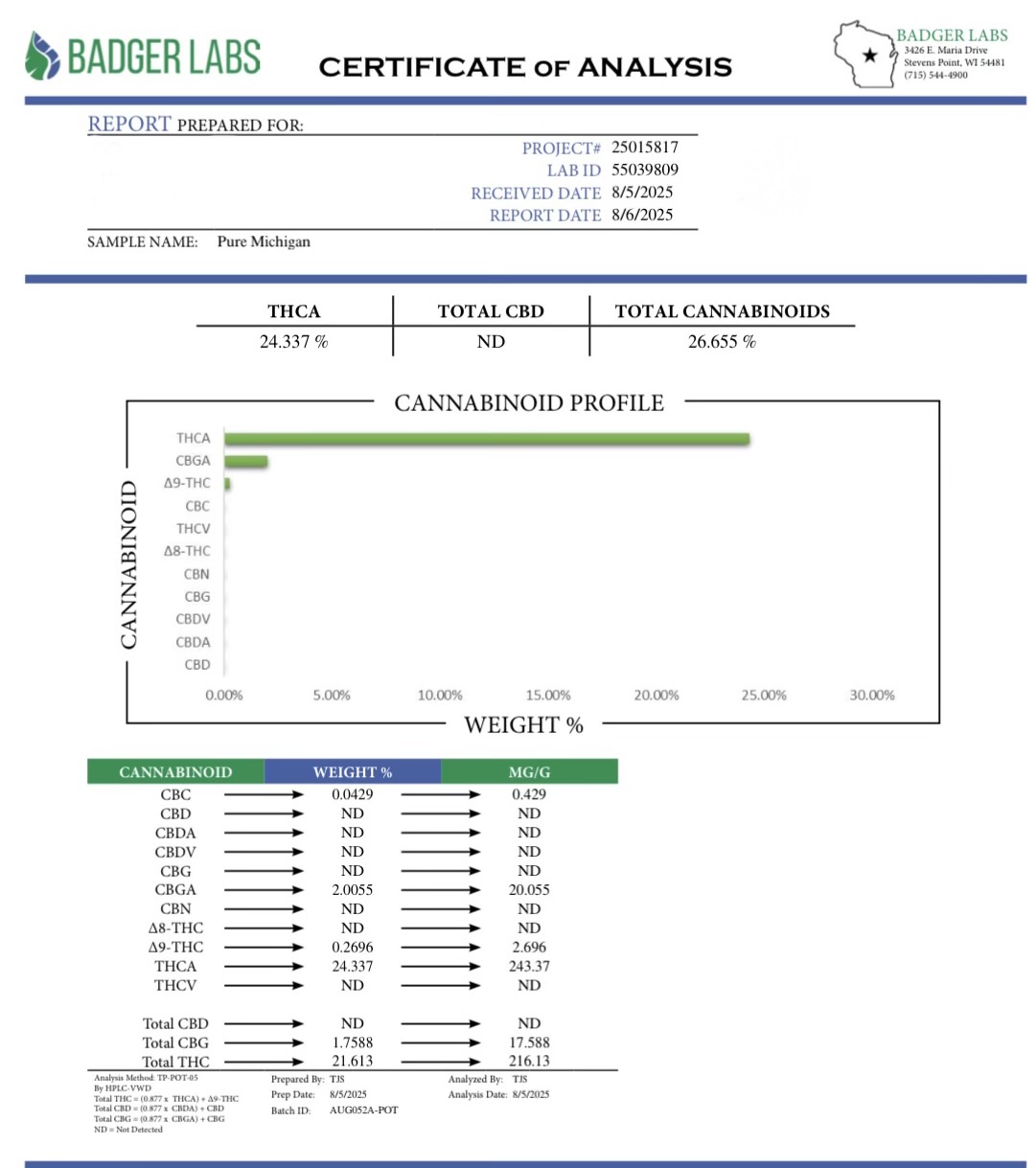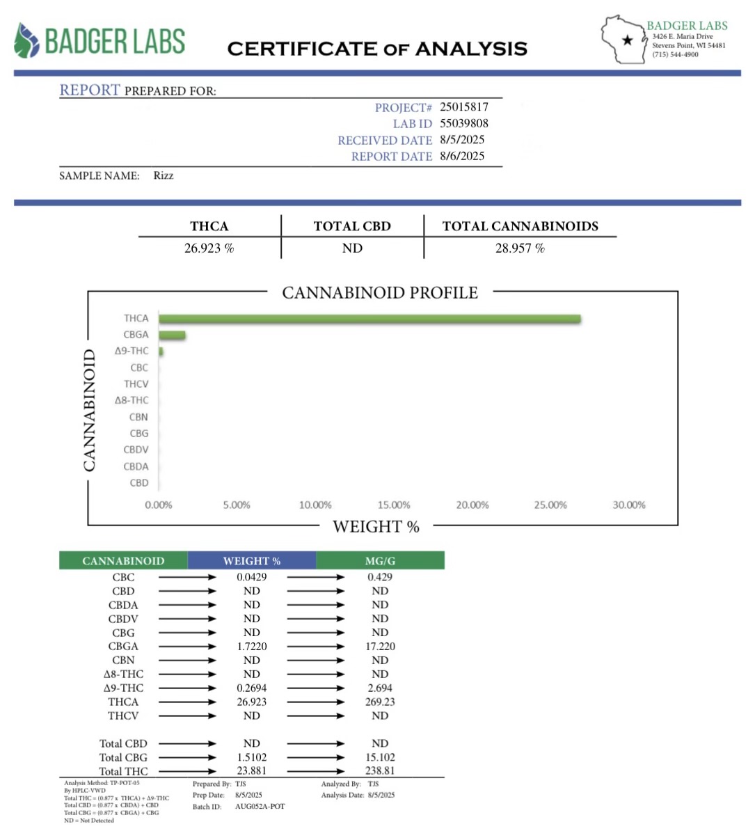 Certificate of Analysis
